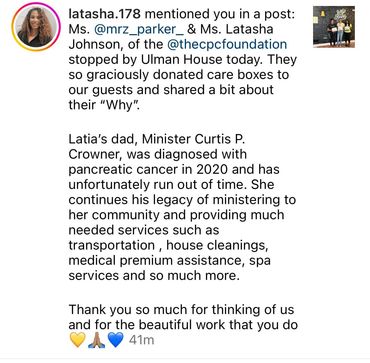 To provide financial, moral and spiritual support to families that are impacted by cancer. Our organization was formed with the intent to assist with the burdens caused by cancer and provide emotional stability. In addition to providing resources to this community, we strive to raise awareness and integrative care to change the narrative of this disease
